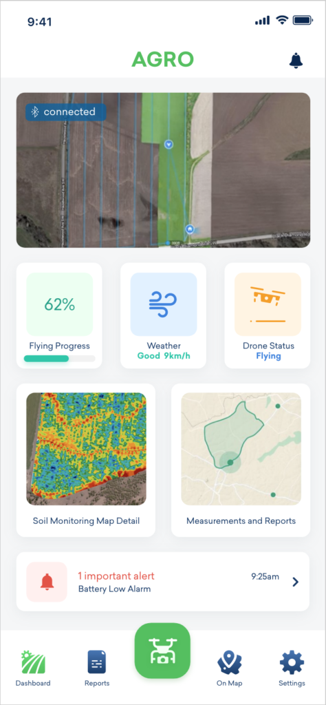 Farmers can monitor their land and crops through the ease of Agro-Drone’s product, software and app which collects data in real-time and sends all the collected data to the cloud.